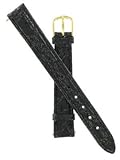Genuine Timex, 12mm, Black, Crocodile Grain, Regular Length, Gold Tone Buckle