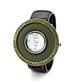 OnSale New Green CZ Black Band Gold Tone Bangle Women's Watch
