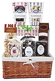 Our Chocolate Basket includes the following items: Double Chocolate Cherry Cookies, Dark Chocolate Covered Cherries, Espresso Caramel Almonds, Rocky Road Bark, White Chocolate Raspberry Swirl Bark, Dark Chocolate Almond Bar, Milk Chocolate Covered Confetti Caramel Corn, Chocolate Decadence Tea Cookies, and a Thick Wicker Basket. Rich, Decadent, Callebaut Belgian Chocolate Hand made in small batches. A perfect gift for the chocolate lover in your life. FREE Shipping A basket of 8 High Quality Gourmet Chocolate Items.