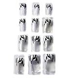 OrderNow Black & White Zebra Print French Tip Pre-Glued Stick/Press-On Artificial/False Nails